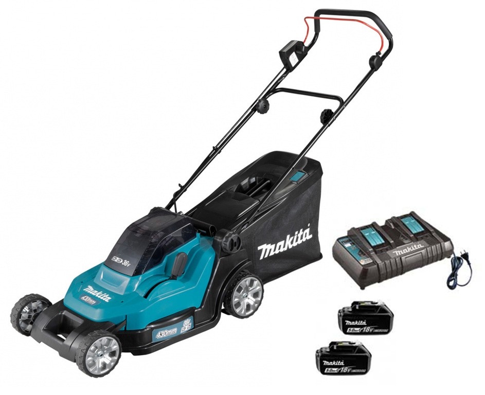 Als je vaak moet maaien. dan liever met de MAKITA DLM432. een sterke accu grasmaaier. Geen gestoei met de kabel. maar vrijheid van bewegen. Met zijn 43 cm brede maaidek is hij geschikt voor gazons tot 575 m2. Let op dit is niet het aantal m2 dat met één acculading kan worden gemaaid. Hij wordt gevoed door 2 accu's van 18 V. De maaier is stil en milieuvriendelijk door het gebruik van Lithium-ion accu's. Hij is onderhoudsvriendelijk. Achter de grasmaaier is het prettig lopen door de ergonomische duwbeugel. Na afloop klap je de beugels van de maaier met de handige snelsluiting eenvoudig in. De maaihoogte ligt tussen de 20 - 75 mm en is centraal in 13 hoogtes te verstellen. Klaar met maaien? Gebruik je accu’s voor één van die andere 250 LXT Makita accumachines. Bij gebruik van twee 5.0 Ah accu's heeft deze machine een gemiddelde standtijd van 30 minuten.Gebruikersvoordelen